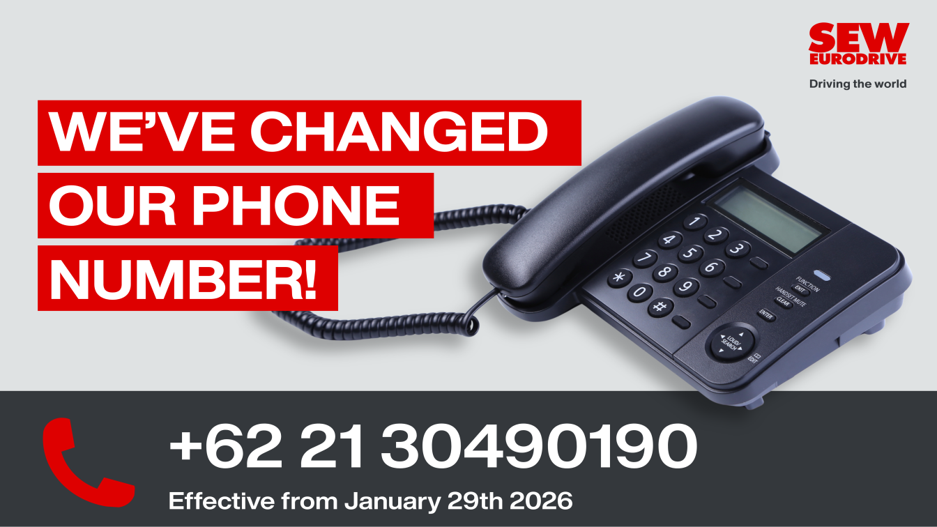 We are pleased to inform you that PT SEW EURODRIVE INDONESIA will be changing its business phone number to +62 21 30490190